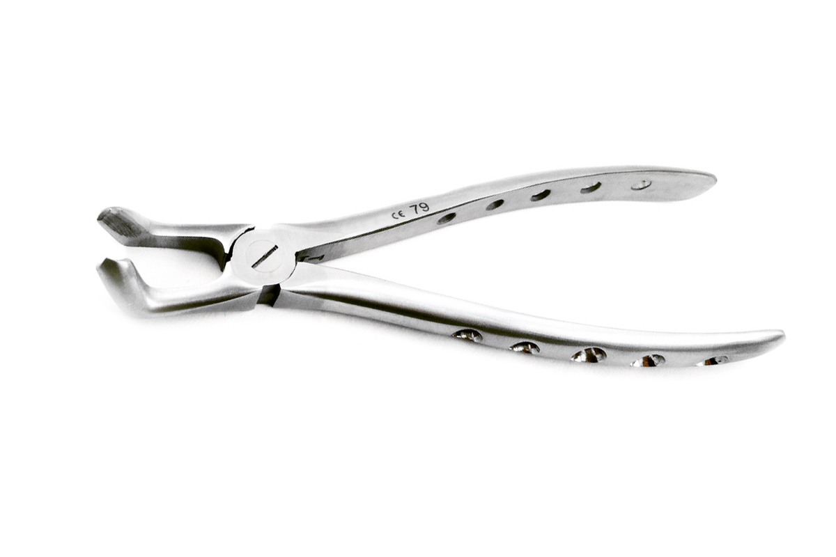 Die Extraktionszange Fig.79 ist für die Entfernung von Zähnen und Zahnfragmenten konzipiert. Ihre einzigartige Lochkonstruktion ermöglicht eine verbesserte Griffigkeit und Präzision, was insbesondere bei schwierigen Extraktionen von Vorteil ist. Der ergonomisch geformte Griff sorgt für eine komfortable Handhabung und reduziert die Ermüdung des Anwenders während längerer Eingriffe. Die spezifische Form der Zange ist darauf ausgerichtet, einen sicheren und festen Halt des Zahns zu gewährleisten, um eine atraumatische Extraktion zu ermöglichen.